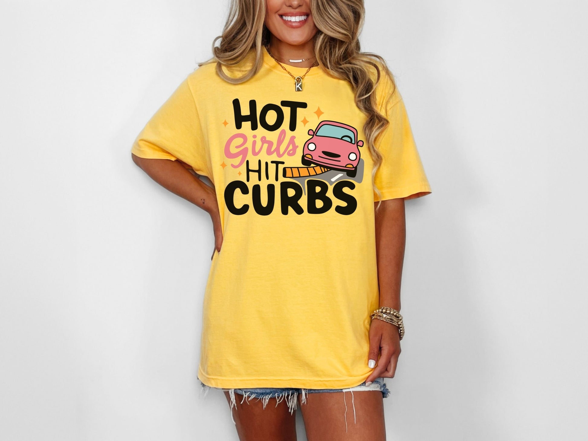 Hot Girls Hit Curbs T-Shirt, Funny Graphic Tee, Unisex Casual Wear, Gift for Friends, Car Enthusiast Apparel